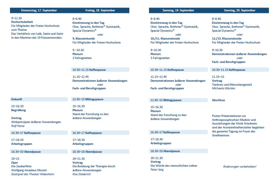 Tagung Goetheanum: Äußere Anwendungen in der Praxis und Forschung der anthroposophischen Medizin